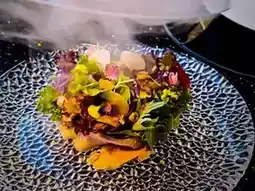 เรื่มจาก Starter เป็นเมนู Pan Seared Scallop หอยเชลล์ตัวโต ซอสสูตรพิเศษที่เชฟรังสรรค์ ให้รสชาติที่ดีมากๆค่ะ และ Duck Salad จานนี้เปิดจานมา มีควันฟุ้งๆ ว้าวเลย และมาถึง Main Dish Lobster Caramel Glaze ลอบส์เตอร์ Size กำลังดีแบบหวานนุ่มเด้ง และ Chilean Sea Bass ปลากะพงคลุกเคล้ากับสมุนไพร ที่มีความสดและหอมมาก ส่วนขนม Chocolate เป็นดาร์คช้อค และ Strawberry Millefeuille
