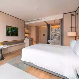There is also a panoramic swimming pool, a 24-hour fitness center, and an electric tricycle service to take you to nearby attractions.