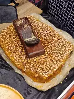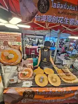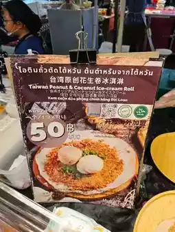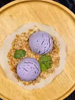 😽 Hello everyone, today I'm going to review a Taiwanese-style peanut brittle ice cream shop. This shop is located in the food zone of Save One Market. It's another place I recommend visiting when you're at the market. The ice cream here is delicious and has a great taste. Personally, I really enjoy this ice cream and find it quite rare. The ice cream consists of a fresh dough base topped with peanut brittle and taro ice cream, and then garnished with cilantro. If you don't like cilantro, you can ask the shop to leave it out. It's a perfect 10 out of 10 for me. I highly recommend you give it a try.