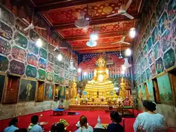 From the parking area, it's a short walk to the temple grounds. There are several spots to visit, including the main hall where you can pray, the preserved body of Luang Pu Sodh, and the large Buddha statue. You can also take the elevator up the multi-story pagoda.