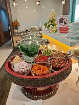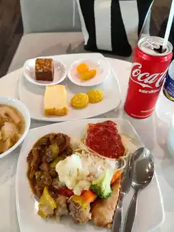 ✨The atmosphere is good, there are many tables to choose from. Here, there is a variety of food, both Thai food, cereals, desserts, drinks. I like the stir-fried pork with shrimp paste, very delicious. There is also tea and coffee. Around 10:00, they will serve Miang Kham, delicious, just tried it. For those who like alcohol, you can also have it, there are many to choose from. 🥂Their champion is good🍾