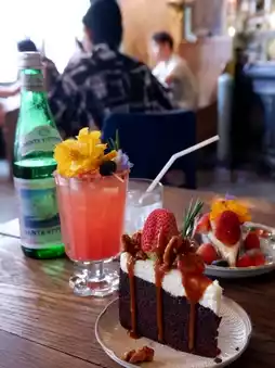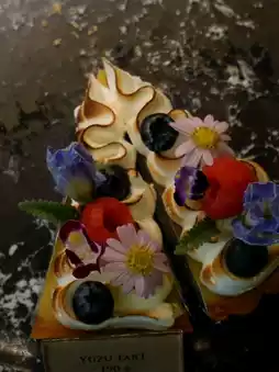 - The shop's signature dark beer cake, a dense cake that is not too sweet but delicious with fruits on top. You should definitely order it.