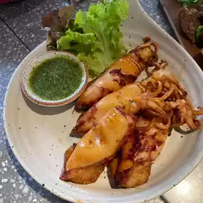 👍Squid Lay Lao (no eggs) large, fresh, bouncy, well-seasoned, spicy sauce, people who don't eat spicy will love it
