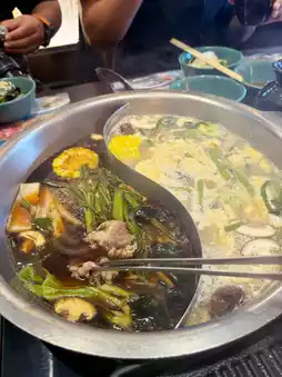 ✨There are 4 soups to choose from: Shabu soup, Sukiyaki soup, Karamiso soup, served with Karamiso sauce, and Tonkotsu soup. 1 pot can choose 2 soups.