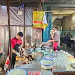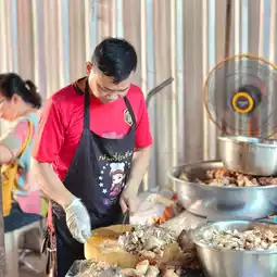 In the past, Yaowarat was a trading area for Thai-Chinese people, and most of them worked as laborers or "Jak Kang", carrying things. The shop sold noodles. During lunch break, the laborers liked to come and eat noodles because it was cheap, fast, and had a lot of quantity. Just think, even a laborer could eat just one bowl and still feel full, which is where the name of the shop, Noodles, Jak Kang, came from.
