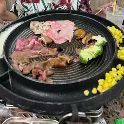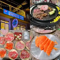 It is a Korean BBQ buffet. It is a delicious and worthwhile BBQ. You can eat until you are very full in 2 hours. The shop is located at Banthat Thong. There are many menus, many types of meat, seafood, salmon sashimi, pickled shrimp, pickled salmon. It is a Korean BBQ grill. You can add steamed eggs and cheese. It is delicious. Fresh food, fresh pickled food, delicious desserts. I must say it is worth it.