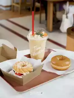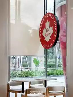 #Travel along the train line Tim Horton's Samyan Mitrtown branch is located on the G floor in front of the mall. It stands out with its red coffee cups. The atmosphere inside is open and airy, perfect for working, reading, or having a snack to relax. The shop is designed to be spacious, with tables and chairs arranged neatly. There are many seating areas, both at the counter for people who come alone and at the group tables for small groups. For those looking for a place to work, this shop is a good choice.