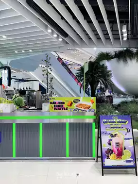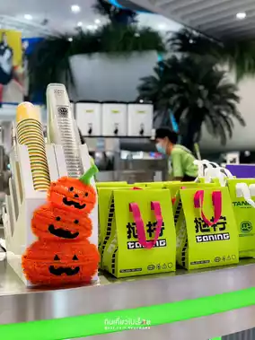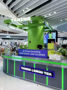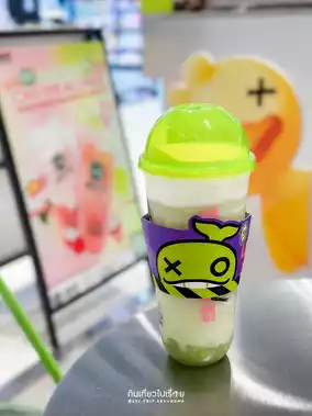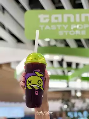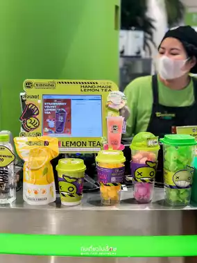 #Travel along the BTS line The Mall Bangkapi The original mall has an additional feature that now has a BTS running through it. Let's have tea at Taning, a tea brand famous for its lemon tea. It just opened a new branch at The Mall Bangkapi. It is eye-catching with its bright green decorations, the shop's signature color that gives a relaxing and refreshing feeling. There is a place to sit and sip tea on days when you are not in a rush.