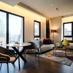 ๐Luxury hotel in Chidlom area ๐๐ฎ๐ฑ๐ฎ๐ซ๐ฒ ๐๐ข๐๐๐ฌ๐ญ๐ฒ๐ฅ๐ Decorated in a modern style, perfect for a ๐๐ญ๐๐ฒ๐๐๐ญ๐ข๐จ๐ง. It is a hotel with a very good atmosphere. Once you come, you will want to come again. With a beautiful and chic hotel decoration There are many photo spots here: โSamson Mansion, Home of the Bamburger, Viva Collection, and HG Homeโ. There are many types of rooms to choose from. As for us, we stayed in the ๐๐ง๐ ๐๐๐๐ซ๐จ๐จ๐ฆ ๐๐ฎ๐ข๐ญ๐๐ฌ room, which has separate bedrooms and living rooms, with a small kitchen area and washing machine. The bedroom is not cramped, and the bed and pillows are very comfortable. The amenities are complete, and you can also see the ๐๐ข๐ญ๐ฒ ๐ฏ๐ข๐๐ฐ from the room.
