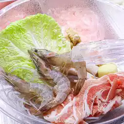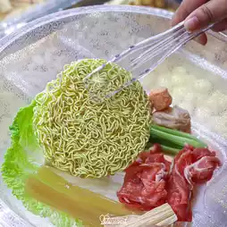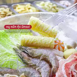 Whether it's seafood, pork, sausage, meatballs, fresh vegetables, and a lot of noodles to choose from, at only 49 baht per 100 grams (price does not include soup)