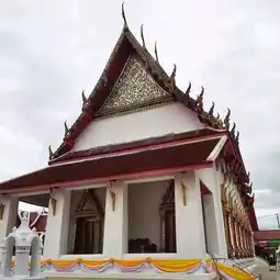 🏠She built a new ordination hall and a gallery of cloisters. The principal Buddha image in the ordination hall, a stucco Buddha image, monks' quarters, and a royal pagoda were named Wat Phakininat, meaning the temple of the younger sister.