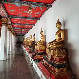 🙏The gallery of Buddha images surrounds the ordination hall. Enshrining a stucco Buddha image in the Mara-Vijaya posture
