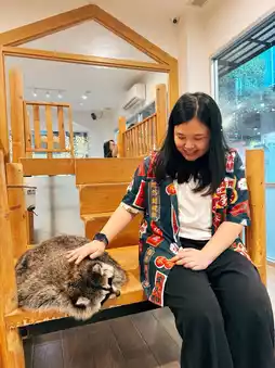 In Bangkok, I discovered a special place called **Little Zoo Cafe** 🦙. This unique cafe combines a coffee shop with a small zoo, allowing you to interact with adorable animals🐾. I ordered a rich latte☕ and a cookie🍪, but you have to leave the area to enjoy your food and drinks to keep the environment clean🧼. As I walked into the cafe, I was captivated by various cute animals, including chubby raccoons🦝, bunnies🐰, cats🐱, and dogs🐶, creating a cozy atmosphere💖.