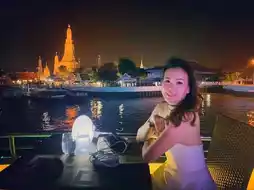 Enjoy the nighttime view of the Chao Phraya River, illuminated by lights, passing by Wat Phra Kaew, Wat Arun, Wat Pho, and Rama VIII Bridge. The Chao Phraya River cruise includes a dinner service for 2 hours, offering a million-dollar view, luxurious dining, an international buffet, and seafood. The large 3-deck boat with an open-air rooftop can accommodate up to 700 guests. Available daily from 19:00 to 21:00. Food type: Thai-international buffet, river prawns, New Zealand mussels, salmon...