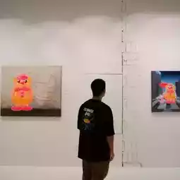 Little.aii (Ai - Aiyada Namsiripaiboon) conveys the perspective of a hero through paintings, using the cuteness and mischievousness of “Bubble Bear” to reflect that heroes have flaws like everyone else. Accepting imperfection happily is the heart of this work.