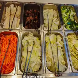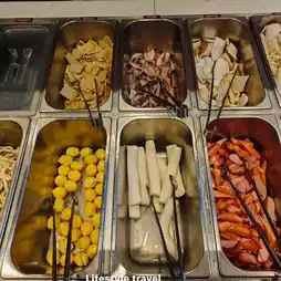 Korean buffet that has Korean flavor, must be at Hotpokki. Starting from the soup that can be cooked by yourself according to the Korean recipe. At Hotpokki, the best is probably the tteok. There are many to choose from. Purple sweet potato tteok, rice tteok, I like the cheese tteok a lot. All kinds of fresh meat, shrimp, squid, meatballs, fresh vegetables, the more you put in the pot, the more delicious it is. There are many snacks to choose from. Corn dogs, oden, kimbap, rice balls, japchae, and many more foods. The price is also cute, including everything. Buffet with pork 276 baht net.
