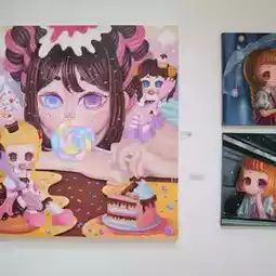 The works in this exhibition are diverse, whether it's lines, colors, or unique creative techniques. Each artist reflects childhood memories through different perspectives, such as "Plujangg", which presents a perspective of small happiness. Surrounded by cute lines and fantasy colors, it invites us to reminisce about imaginative adventures.