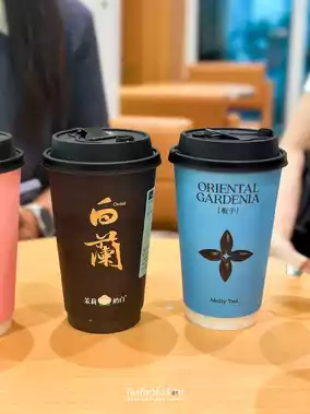 The shop's signature menu is jasmine tea and a variety of flower teas to choose from, such as gardenia, magnolia, and osmanthus. There are both milk and clear teas.