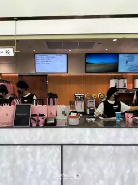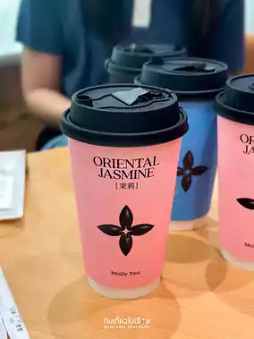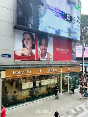 #Travel along the BTS line "Molly Tea" shop at Siam Square, a new tea shop that tea lovers must come and try. This shop offers tea from China. The location is prominent on the corner of the building, next to the BTS Siam entrance. The atmosphere in the shop is filled with cuteness. The emphasis is on bright pink tones that give a warm and friendly feeling. There are comfortable seats to sit and sip tea and chat.