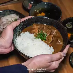 For those who don't want to eat the shabu-shabu set, there are also single-dish menus. There are various curry rice dishes, such as thick, juicy Wagyu Hamburg, or beef tongue. Or there's the new Kurohana Yukke menu, which uses Kurohana Wagyu A5, cooked with the restaurant's special sauce, topped with S-Pure eggs that can be eaten raw. Safe without chemicals and antibiotics