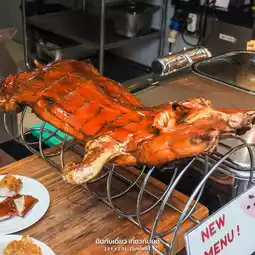 ◾ Crispy pork 🐷 Full of 9 items: Crispy pork, Crispy pork with basil, Crispy pork pizza, Crispy pork sandwich, Crispy pork tacos, German pork knuckle, Kuay jap with crispy pork, Crispy pork skin Crispy Pork Pao Bun