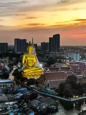 The golden statue transforms beautifully during sunrise and sunset, making it a must-visit on your Thailand itinerary.