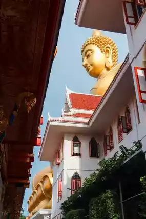 Locals are friendly and will guide you, with clear Chinese signposts at intersections. For a dramatic shot of the Buddha, visit Wat Paknam Bhasicharoen Bangkok.
