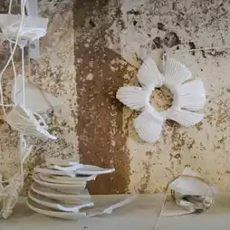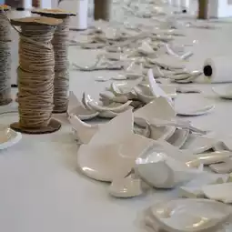 "Mend Piece" invites us to let go of our thoughts, sit down, and repair broken ceramic fragments using glue, string, and various materials. The repair of broken things symbolizes the healing of physical and mental wounds of humans, and conveys the need for people to work together to create unity and restore what has been destroyed.