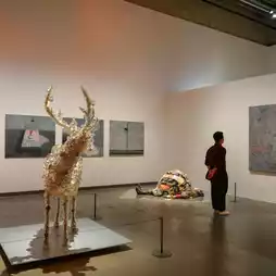 👉 Kohei Nawa's stuffed deer and crystal ball It presents the individual and the collective through the combination of natural and digital objects, making us aware of the coexistence between the past and the present.