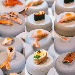 - Australian Wagyu beef sushi category, salmon sushi, Japanese eel sushi, wasabi squid sushi.