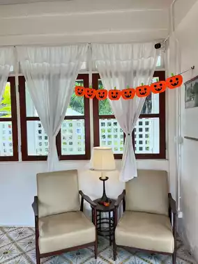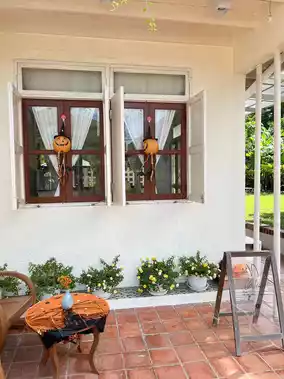 It is a home cafe, not too small or too big. There are 2 floors inside with air conditioning or you can sit outside. The atmosphere is nice, shady, not too hot. 🌳