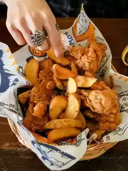 • Fried chicken set size S (2 pieces of fried chicken + French fries + sauce) 195฿