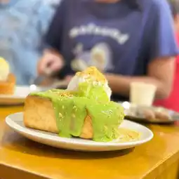 🍞 Junpang Bread-Fresh Milk, Banthat Thong Road, between Soi Chula 16-18, has a taste that is just the right amount of sweet, soft bread, pandan-scented custard, Thai tea, smooth and fragrant, excellent ice cream, refreshing cocoa smoothie is also delicious, a variety of dessert menus, people line up to eat at the shop, if you come to walk around this area, you must stop by.