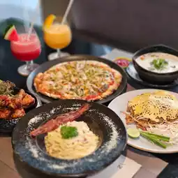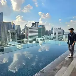Red Square Rooftop bar by the pool, city view at night, very beautiful Open every day from 7:00 p.m. - 1:00 a.m. There is a DJ playing music every Friday and Saturday.