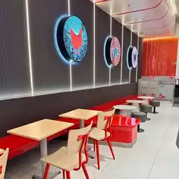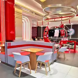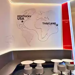 🍗 KFC One Bangkok branch is a restaurant with a modern and airy atmosphere. It feels spacious and is suitable for dining alone or with a group of friends. The seating area includes single tables, shared tables, and a chill-out corner. It comes with a modern decoration in the style of KFC that provides a relaxing feeling. The menu is standard KFC, such as fried chicken, Hot & Spicy and Original recipes, along with a variety of snacks. The staff is friendly and provides fast service. It is a great place to relax or have a delicious lunch in the business district.