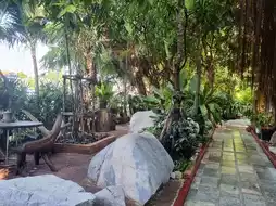 There is also a spacious area inside the temple for walking around and taking pictures. The atmosphere is peaceful and shady, perfect for meditation or relaxing.
