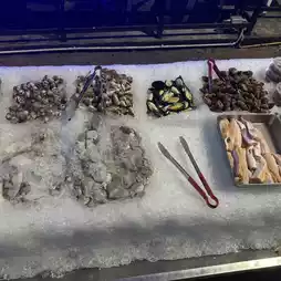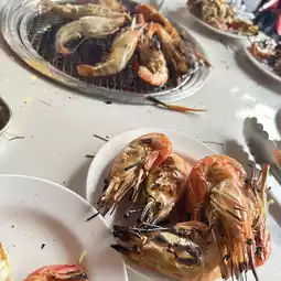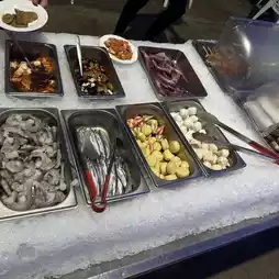 I even challenged myself to grill Thai shrimp. There was also a cooked food section behind the seating area, and everything was delicious 🤤. The all-you-can-eat buffet for 499 baht is highly recommended, and it's near the subway station. We arrived around 5 PM and were seated immediately.