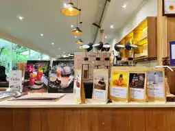 Atmosphere/Place - Shady, like being in a garden, not many trees, good atmosphere, spacious shop area, very beautifully decorated, many photo spots, both indoor and outdoor seating areas