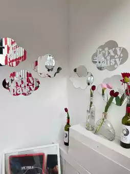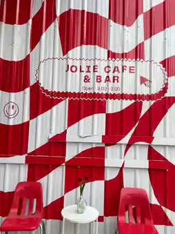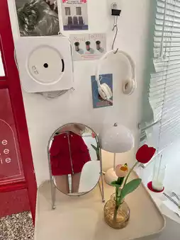 And there is also a sticker photo booth. There is a nail salon next to the cafe. Taking Polaroid photos is very beautiful. White contrasts with red