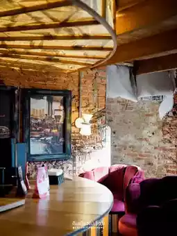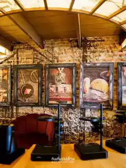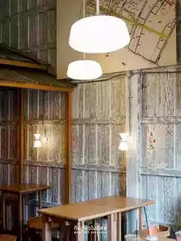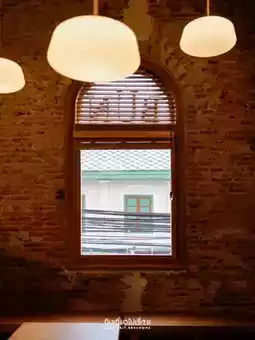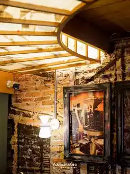 For the decoration, it emphasizes the orange and brown tones of wood. The walls and walls are made of brick blocks that have been plastered in a messy way, looking like patterns and cool in another way. As for the furniture, it is almost entirely made of wood. 🪑 Decorated with lamps on the ceiling, which helps to make it look warmer.