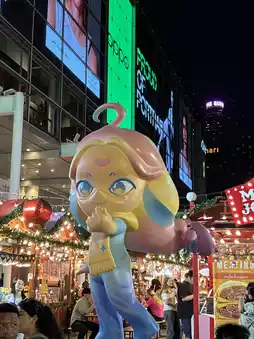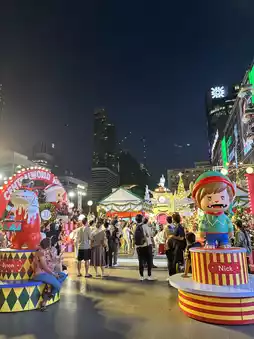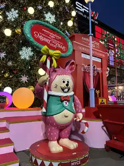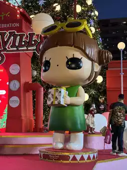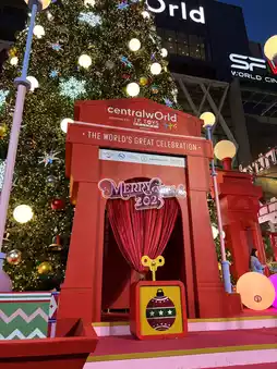 When the end of the year approaches Christmas, there is one shopping mall that always goes big, and that is Central World. Every year, there will be a different theme. I believe that many people must be waiting for the Christmas tree arrangement of this mall. This year, the theme is Merry Ville 2025. The highlight is the Art Toy parade, which brings various characters to show in front of the mall. It is the biggest Art Toy. The most exciting thing is probably the art toy, Abigail, the daughter of Chompoo Araya. She is so cute! In addition, there are shops in the event, such as clothing stores, dish shops, cosmetics stores, and bag stores for everyone to shop. I must say that anyone who is a photography lover must not miss it.