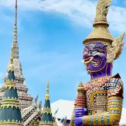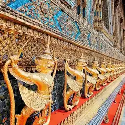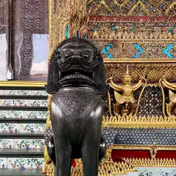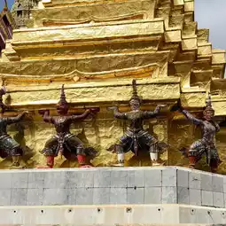 Beyond the Emerald Buddha itself, the temple grounds are a treasure trove of artistry and symbolism. From the intricately detailed murals depicting the Ramakien (the Thai version of the Ramayana) to the towering golden chedi and mythical statues guarding the temple entrances, every corner radiates craftsmanship and spiritual meaning. The scale and detail of the complex made it easy to lose myself in the stories etched into its walls and structures.