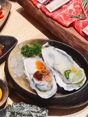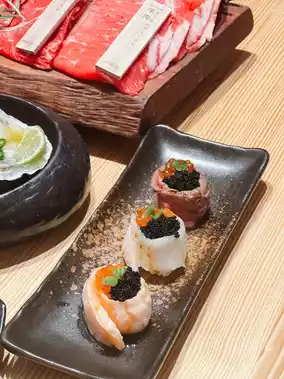 (Adjusted from the 1399 set menu, reduced price) A new set designed based on votes, including specially selected Aus beef and Wagyu beef. The beef here is really good. We have to give it a shout-out. And a new menu of quality pork like Koji pork from Japan, including sushi, sashimi, Korean oysters, river shrimp, and pickled menus. It's so full. I can tell you it's worth it.