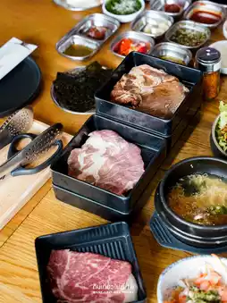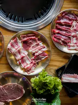 #triptravelchina 🥓🥢 Sinsa Korean BBQ Korean BBQ buffet at Phutthamonthon Sai 2. When you get there, there is a lot of parking. There is a restaurant, a bar, and a small garden at the back, which comes with cute animals, creating a homey and comfortable atmosphere. The service is good. The staff will refill the charcoal and help take care of you all the time.