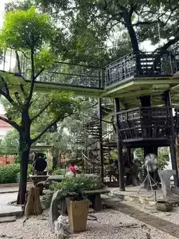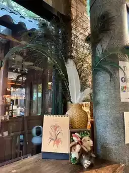 A natural cafe with a tree house zone and peacocks. There are seats both inside the air-conditioned room and outside. This cafe serves fragrant, delicious, and not too sweet Taiwanese tea. There are also desserts. In addition, the cafe also has activities for making postcards or writing Chinese characters. You can come and sit and relax or work at the same time.