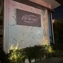 This is Bangna Kitchen. There are various branches, and we are at the Bangna branch. The restaurant is located on Bangna-Trad Road. The operating hours have been extended, and it now closes at 2 AM. If you are in this area and looking for a dessert shop or a café to work in for a long time, we recommend Bangna Kitchen. They have Wi-Fi and power outlets. They offer both savory and sweet dishes, making it suitable for families as well as individuals looking for a place to work.