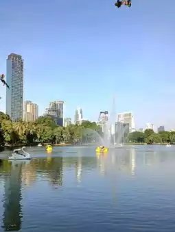 In the morning, there are many people who come to exercise. For those who want to exercise but don't want to run, Lumphini Park has water activities such as pedaling ducks and rowing boats. There is a large lake in the middle of the green park, which is a good place for city people to relax. Or you can come to walk and look at the green trees, which is also very relaxing. While you are relaxing, you might see a cute local cat or a little crocodile passing by to say hello.