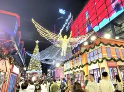 The shopping mall is already full of Christmas atmosphere. There are many Christmas decorations both indoors and outdoors. A Christmas town has been added outdoors with many shops and food. There are live band performances in the evening. The Christmas atmosphere is strong. Everyone can go shopping when you have time.