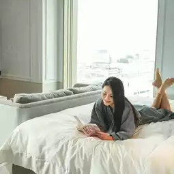🛌 This room is an Executive Room, a large corner room that can see the city view on 2 sides. Comes with facilities. King Size bed, electric curtains and the highlight of this room is a Jacuzzi with glass that can lie down and soak in the water. See the city view Gives a luxurious atmosphere 💕🛁