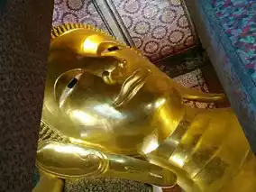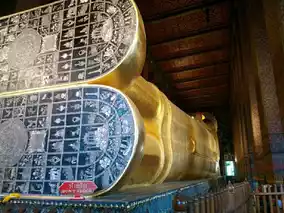 .. In the Reclining Buddha chapel, there is the Phra Phuttha Saiyasana, a Buddha statue made of brick and mortar, covered in gold leaf, and is the third largest in the country.